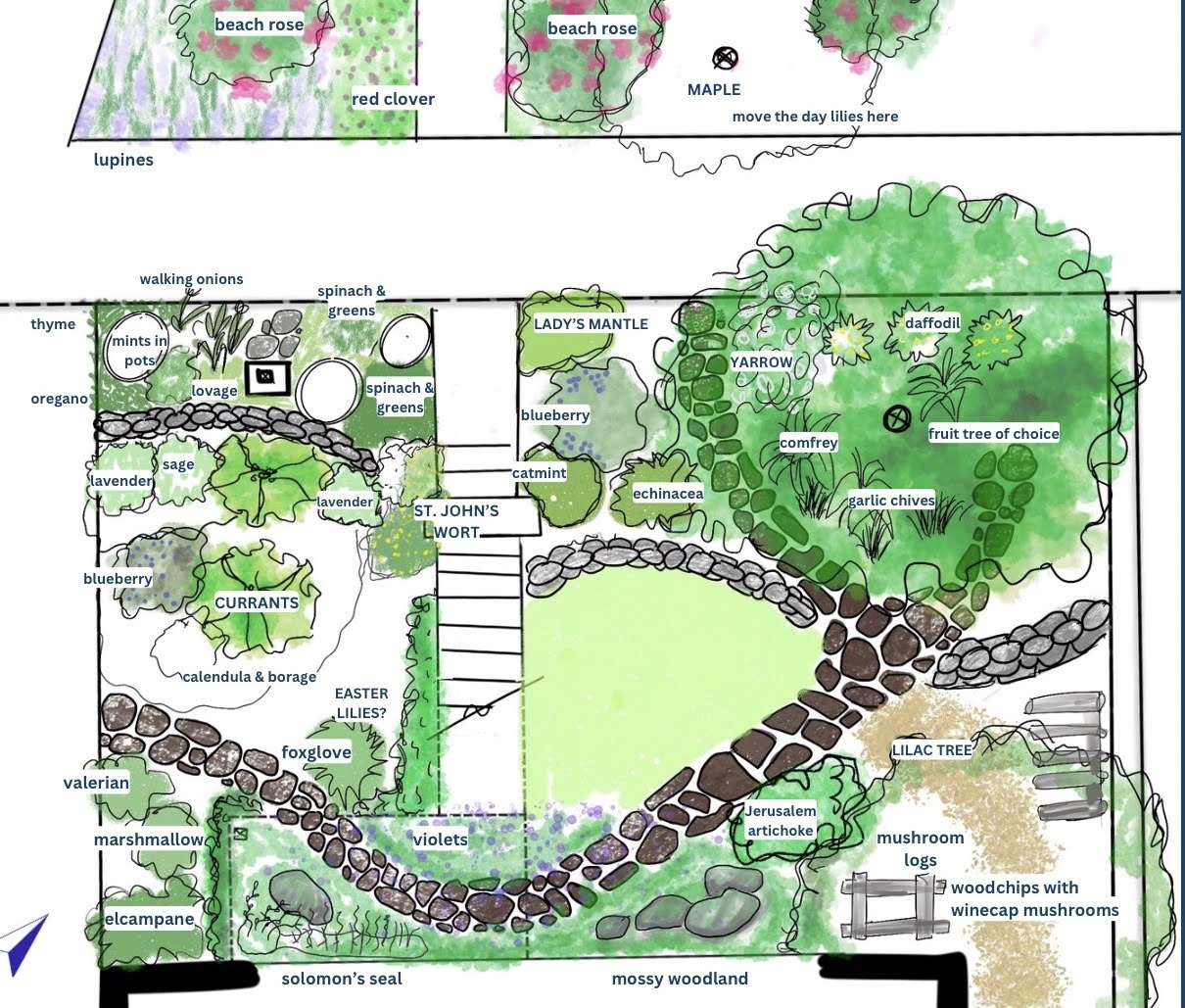 I got my Permaculture Design Certificate in 2024 and designed my own backyard for my class project. It is an urban yard with limited space, so I wanted to maximize the functionality. Instead of aiming for a high yield, I wanted one of everything, so I could see what was in season.